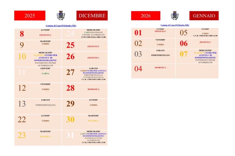 Le principali variazioni si verificheranno nella settimana che va dall’8 al 13 dicembre e nel periodo che va dal 22 dicembre fino al 7 gennaio
