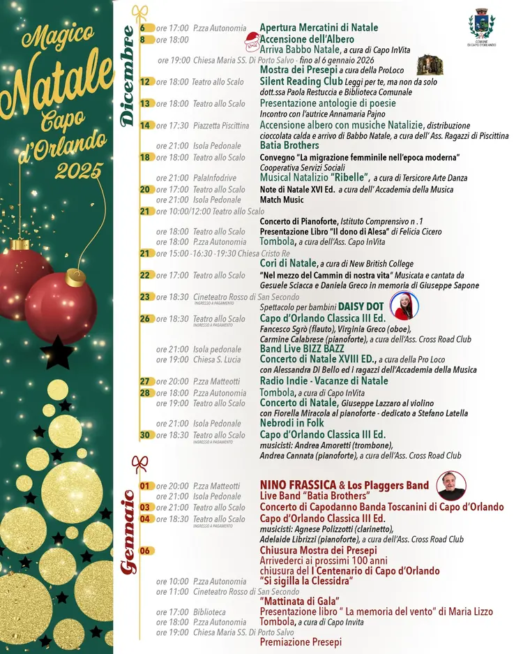 Il programma natalizio a Capo d'Orlando