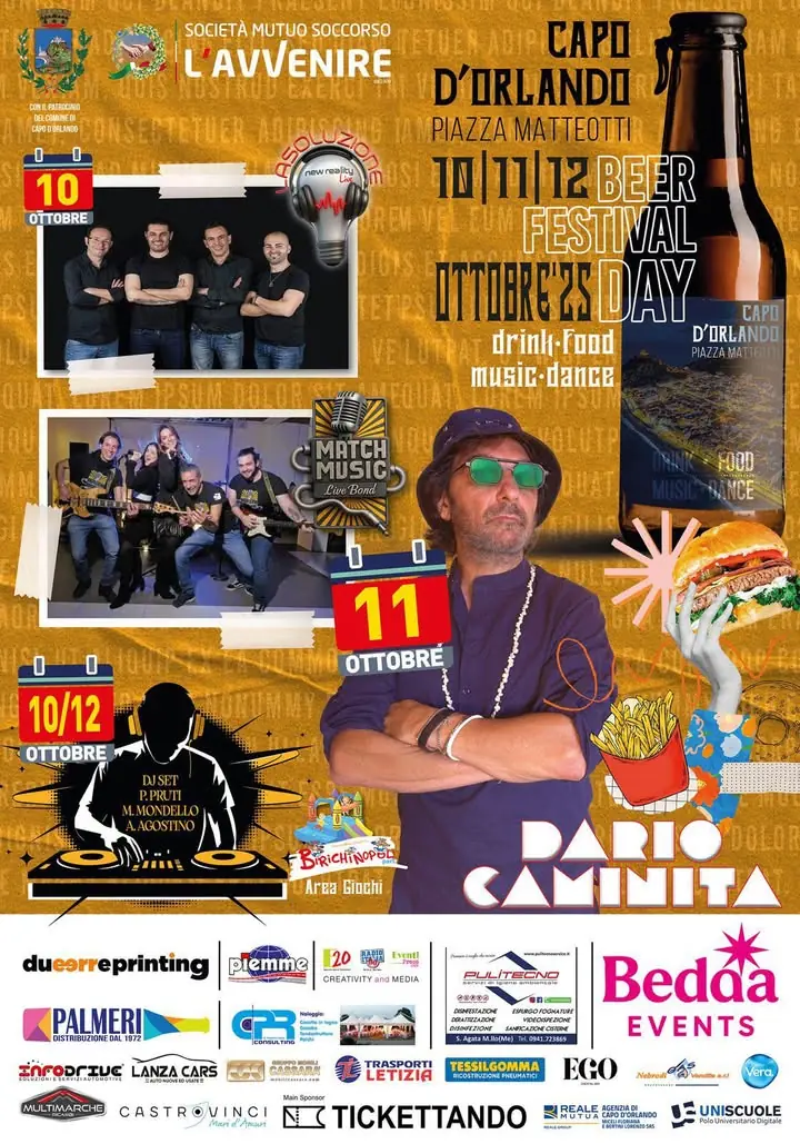 🍻 Torna a Capo d’Orlando il Beer Festival – Ottobre Fest Day! 📅 Dal 10 al 12 ottobre 2025 in Piazza Matteotti tre giorni di musica, buon cibo e tanto divertimento! 🎶 Programma: 👉 10/10 La Soluzione Live + DJ set 👉 11/10 Dario Caminita + Match Music Live Band 👉 12/10 gran finale con musica e DJ set 🍔